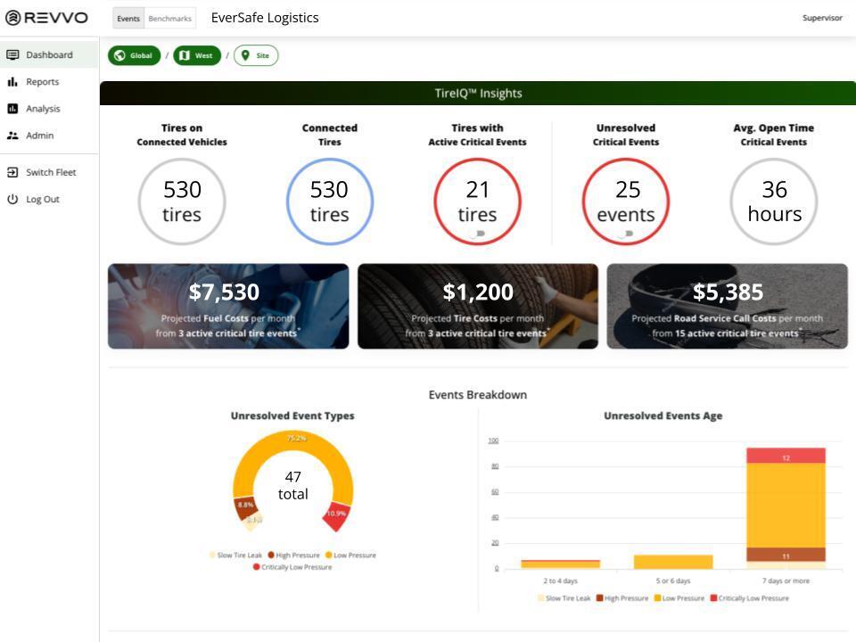 With Revvo TireIQ solution for tire management, oil & gas fleet operators can rapidly deploy sensors on any brand or model of Class 8 trucks and trailers, along Class 6 & 7 vehicles.