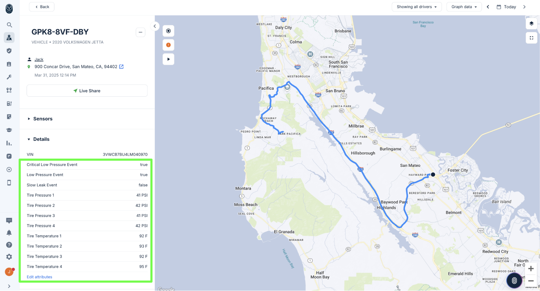 • View tire pressure, tread, temperature, and leak data from every vehicle, 24/7