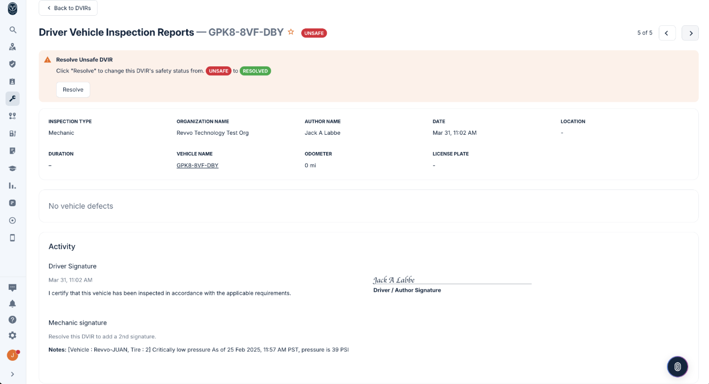 • Tire-related events instantly trigger DVIRs for compliance and resolution